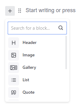 - Click on "Start Wrting or press TAB key to choose a block" to begin entering your content