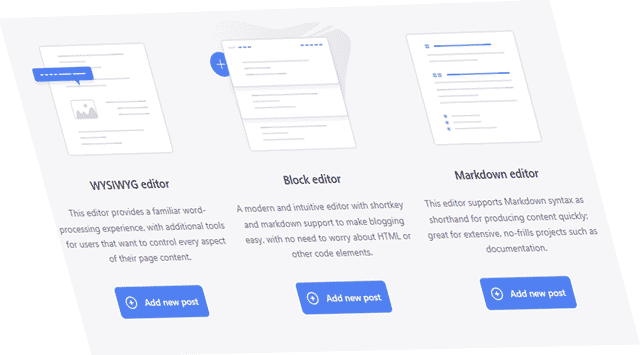 - Block: the simplest editor (recommended)