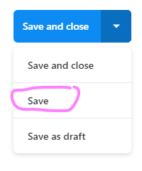 - At the top right of the screen press the drop down and choose "Save"